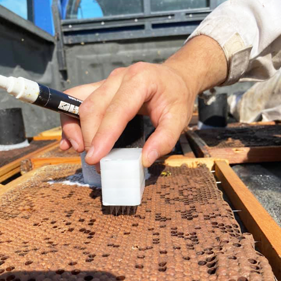 Utilisation : Percer 50 alvéoles contenant des nymphes le matin, puis revenir regarder le nombre d’alvéoles que les abeilles ont commencé à désoperculer après six heures. Les colonies qui auront désoperculé le plus seront celles qu’il faudra sélectionner pour leur caractère hygiénique.
